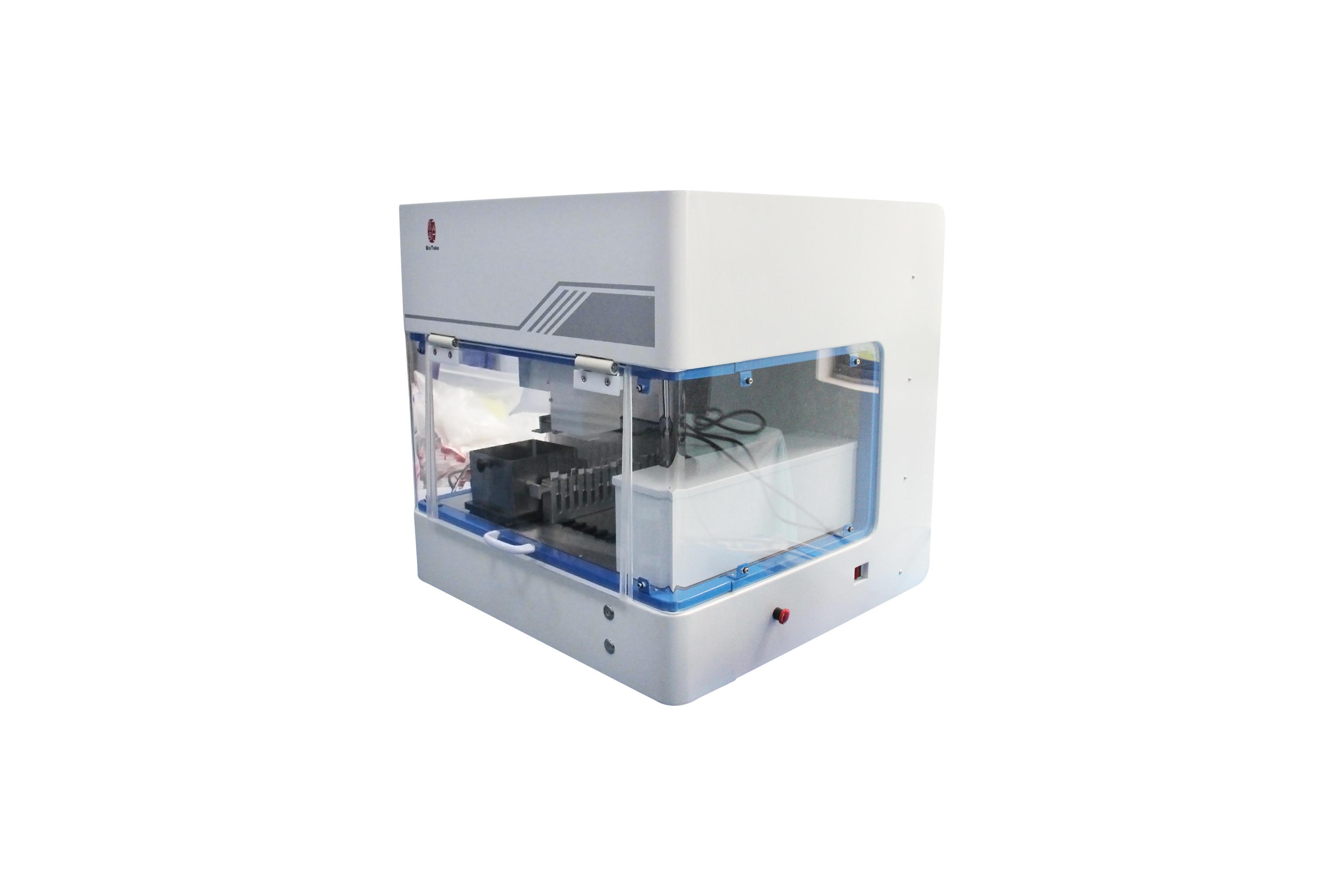 自動加樣工作站是百泰克生物專門研發(fā)生產(chǎn)的用于樣本上樣的一款智能化設(shè)備。它可以按照程序設(shè)置自動完成將樣本從樣本管轉(zhuǎn)移到凍存管或96通量深孔板的工作,兼容1.5ml EP管、2.0ml EP管、5.0ml EP管、10ml EP管、唾液保存管、采血管、血液RNA保存管等多種樣本保存管,實現(xiàn)了樣本的自動上樣,保證了上樣的準(zhǔn)確性和精確性。